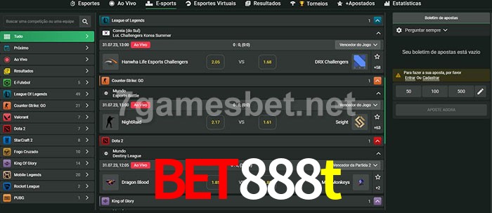 O bet888t oferece uma grande seleção de opções de apostas em e-sports com probabilidades competitivas